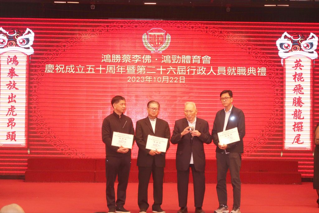 由鴻勝蔡李佛·鴻勁體育會主辦的慶祝成立50周年暨第26屆行政人員就職典禮於10月22日假澳門萬豪軒舉行。該會新一屆會長鄧永源期望今後能與各蔡李佛同門共同努力發展,弘揚傳統武術,推廣武道教育與文化精髓。