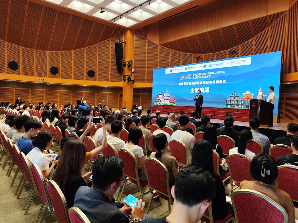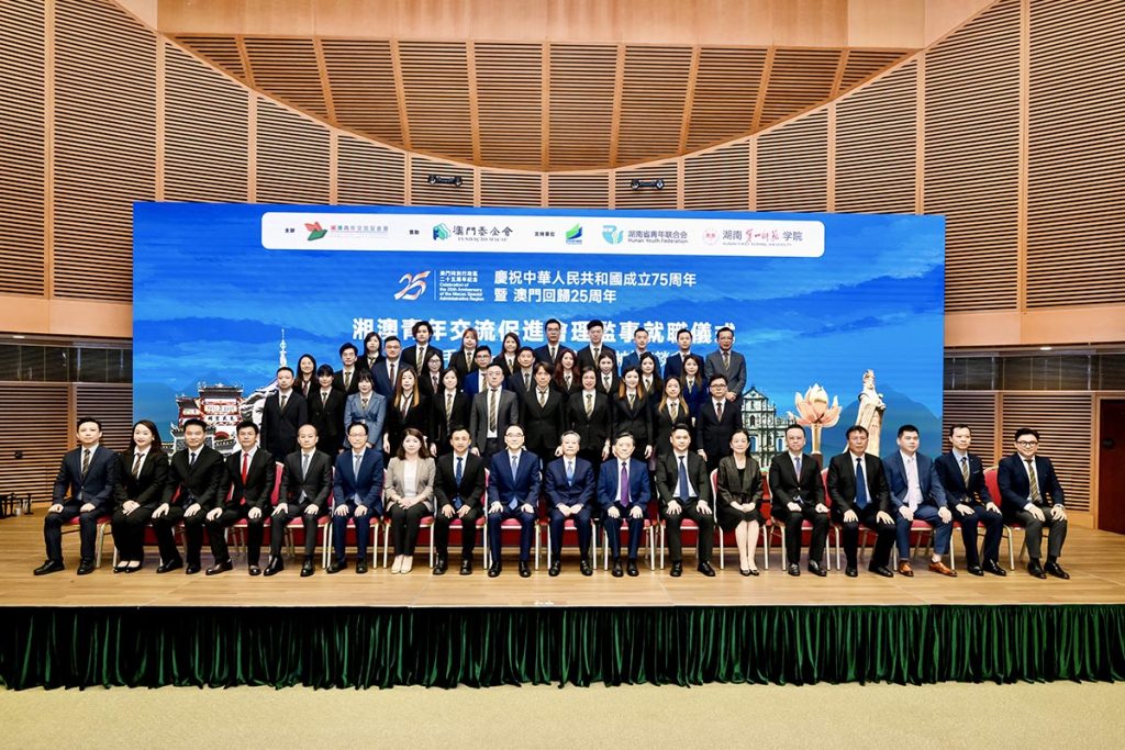 湘澳青年交流促進會慶祝新中國成立75周年、澳門回歸25周年暨新一屆理監事就職儀式於昨日下午3時假澳門科學館會議中心舉行。同場舉行由湖南第一師範學院安排主講的「認識毛澤東——為人民服務的領袖座談會」。