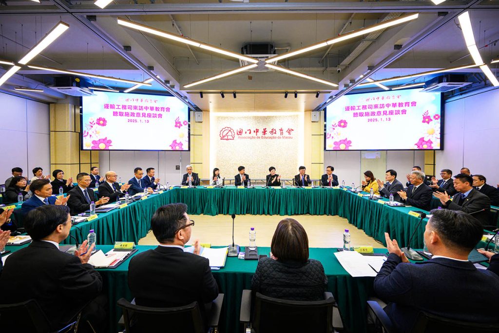 中華教育會會長陳虹歡迎譚偉文一行到訪。該會代表對於運輸工務範疇所開展的工作給予肯定,均指出近年來大型工程不斷完善及落成,澳門國際大都市不斷發展和提升。該會代表還就國有土地規劃、增加校舍空間、增加標準運動設施、爭取更多體育用地給年青人使用、向學生加強宣傳運輸工務範疇工作、完善交通安全配套設施、加快輕軌建設、加大推動智慧交通出行、引入更多公交類型、改善長者出行條件、提升的士司機服務素質、持續完善經屋法以配合家團成員的變化、不斷推進環保宣傳工作、減少道路工程重複開挖,以及加強宣傳天氣預報等議題表達關注和提出建議。