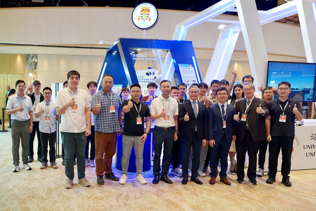 澳大是次展出的重點科研成果矚目。科技學院教授Carlos Silvestre研發的用於淺水介入的海洋航行器ORVIS,作為澳門首個自主研發的自主水下航行器,它標誌著澳門在高端海洋裝備設計與集成能力上的突破;另外,科技學院教授徐青松研發的自動化機器人微注射系統和爬壁機器人,科技學院助理教授鍾俊文研發的用於虛擬現實的可穿戴觸覺反饋裝置和智能微型機器人,應用物理及材料工程研究院教授曲松楠、副教授孫國星分別研發的基於碳納米點的皮膚修復水凝膠、高分子/水泥納米複合材料,微電子研究院助理教授李家明研發的微型化磁力共振成像系統,智慧城市物聯網全國重點實驗室教授周萬歡、副教授顏王吉分別研發的光纖光柵傳感基礎設施安全監控系統、橋樑“聽診器”智慧感知系統,中華醫藥研究院副教授何承偉與澳門企業合作開發的“澳門一條筋”貼片,健康科學學院教授陳國凱研發的間充質幹細胞化學組分明確無血清完全培養基亦一同亮相。