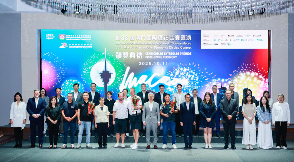 旅遊局主辦的第33屆澳門國際煙花比賽匯演於11日晚上圓滿落幕並舉行頒獎典禮。來自世界各地的10間煙花公司施展渾身解數,在橫跨9月和10月的5個煙花夜爭妍綻放。經過一輪角逐,最終由來自英國的Pyrotex Fireworx煙花公司奪得冠軍寶座,來自菲律賓的Platinum Fireworks煙花公司及中國的東信煙花公司分別奪得亞軍及季軍。