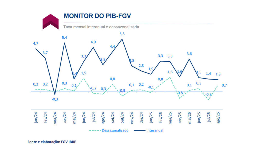 巴西經濟研究所(FGV IBRE)於10月17日日發布的最新「PIB監測報告」顯示,巴西經濟在2025年8月實現了0.7%的增長,與7月相比有所改善。然而,報告同時指出,家庭消費連續第三個月出現萎縮,為經濟增長前景蒙上了一層陰影。