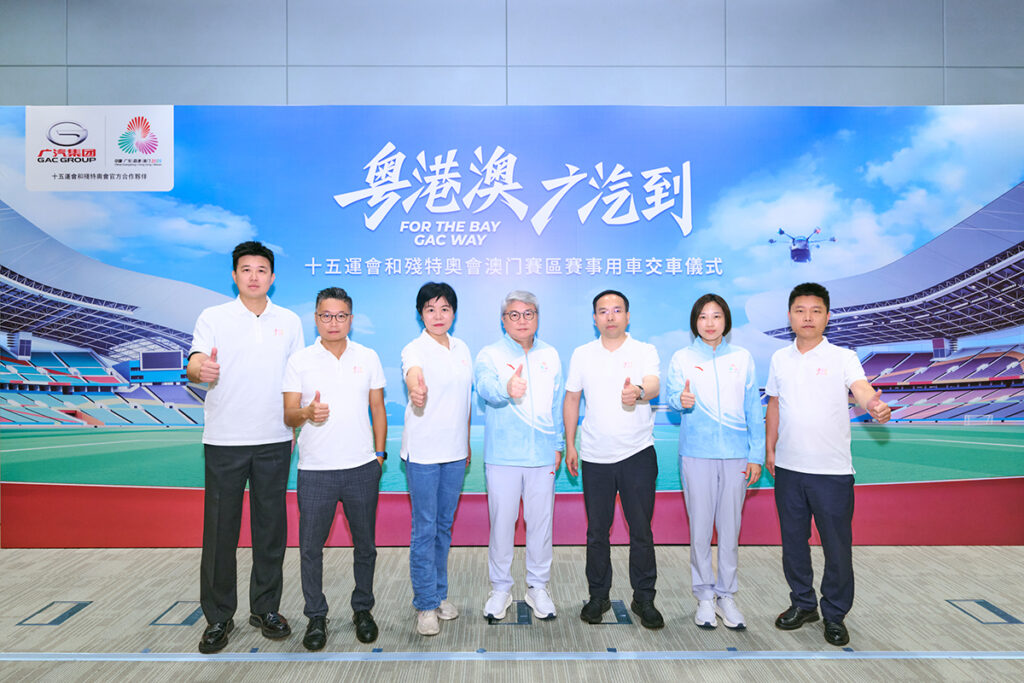 第十五屆全國運動會和全國第十二屆殘疾人運動會暨第九屆特殊奧林匹克運動會澳門賽區賽事用車交付儀式昨日上午在澳門東亞運動會體育館舉行。95台專為澳門賽區定製的「右軚版」全球化賽事用車E9 PHEV正式交付。同時,廣汽還特別為澳門賽區設立了廣汽全運會智行保障中心,以應對賽事24小時高強度運轉的複雜用車需求,全力保障十五運會和殘特奧會的順利進行。