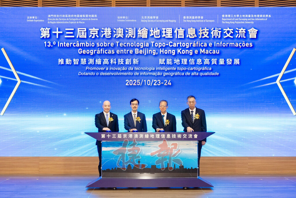 「第十三屆京港澳測繪地理信息技術交流會」是由由澳門地圖繪製暨地籍局主辦,北京測繪學會、香港測量師學會、香港理工大學土地測量及地理資訊學系共同協辦,大會於昨上午在澳門科學館會議中心舉行開幕禮。