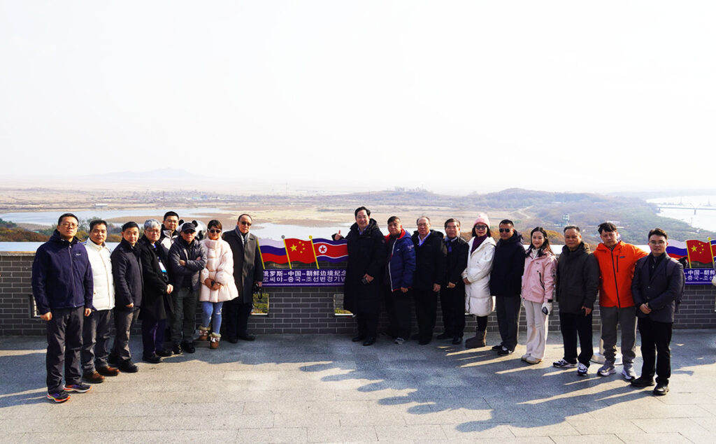 防川村依山傍水,東南與俄羅斯哈桑區相鄰,西南與朝鮮羅津先鋒市隔江相望。在防川景區,參訪團登上64.8米高的龍虎閣,遠眺「一眼望三國」的壯麗景色,圖們江靜靜流淌,與遠處瀕海平原交相輝映。沿圖們江順流而下約15公里即可進入日本海,使防川成為中國與東北亞國家貿易的重要潛力通道。