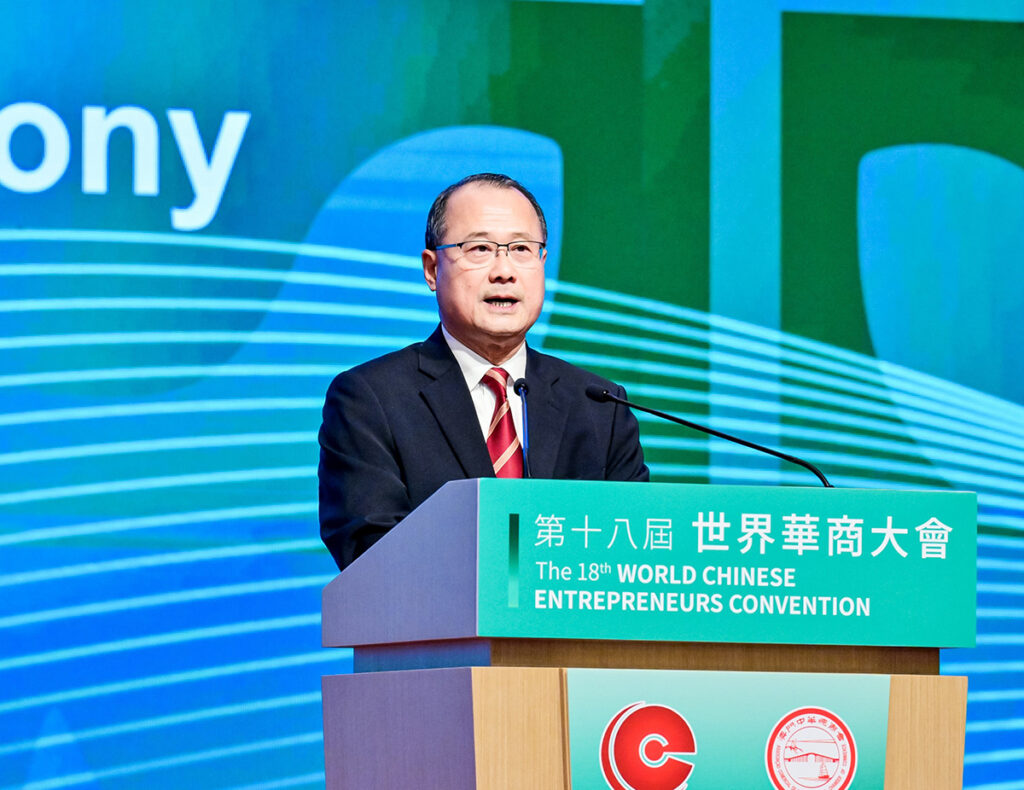 香港中華總商會會長蔡冠深致辭時表示,澳門獨特的區位優勢、開放包容的營商環境,與世界華商大會的精神高度契合,為探討新形勢下的全球機遇、應對共同挑戰提供了絕佳的舞台。大會旨在匯聚全球華商的智慧與力量,共同探討數字經濟、綠色發展、「一帶一路」等領域湧現的新機遇,推動華商事業邁向新高,為促進全球繁榮,增進各國人民的福祉貢獻力量。