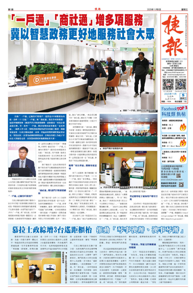 澳門捷報,澳門捷報網站-專注大灣區創新、創意和創業的"三創"資訊,並每日公佈本澳時事熱話榜單,按不同話題分類搜羅居民最關注的話題,貼近居民生活.