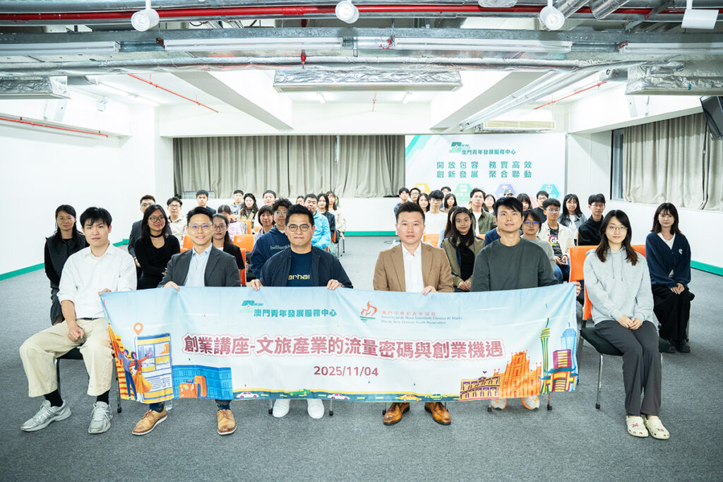 澳門青年發展服務中心(下稱:「青服中心」)於11月4日成功舉辦「文旅產業的流量密碼與創業機遇」之創業講座。活動特邀澳門麥芽科技有限公司創始人兼行政總裁蔡思偉以及發現澳門科技有限公司創始人蔡淵博共同擔任主講嘉賓,聚焦文旅產業與數字經濟的深度融合議題,吸引40餘位澳門青年踴躍參與,現場交流氣氛熱烈。