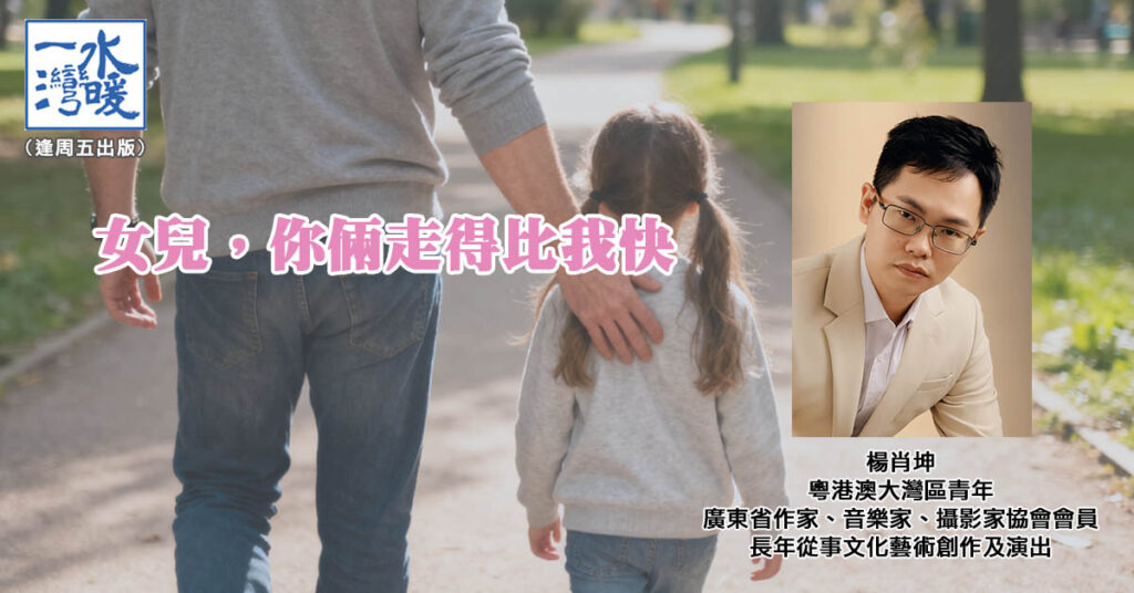 人的成長,總是置於大時代背景之下的。父輩出生於新中國成立後不久的上世紀五十年代,我成長在改革開放後的珠三角地帶,而兩位女兒則在資訊化時代中,奔走在粵港澳大灣區的水土上。我有幸坐上高速發展的「春天號」列車,成長與父輩自不能同日而語。而今,看著眼前漸漸長大的身影,我也知道,她倆走得比我快。此刻,我還是她倆的人生導師,而想必很快我就要向她們學習,好讓自己的腳步能繼續勇往直前,一起走向未來。