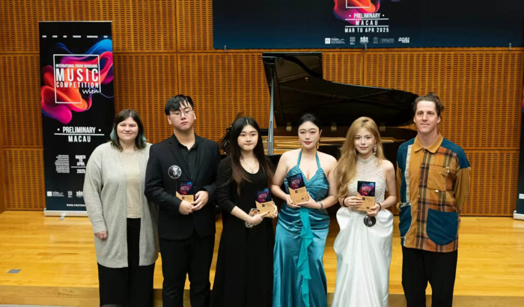 「2025年IYMMC維也納國際青年音樂家音樂大賽」初賽近日在澳門舉行,澳門理工大學藝術及設計學院音樂學士課程學生表現卓越。吳雙蓉、廖倍佳、宗小歡、蔡詩怡在「古典聲樂公開組」中發揮出色,攜手奪得金獎。其中,廖倍佳更進一步,在亞洲總決賽中憑藉穩定演唱和豐富舞台經驗,榮獲「最高獎項」(亞軍),為澳門及澳理大爭得榮耀。