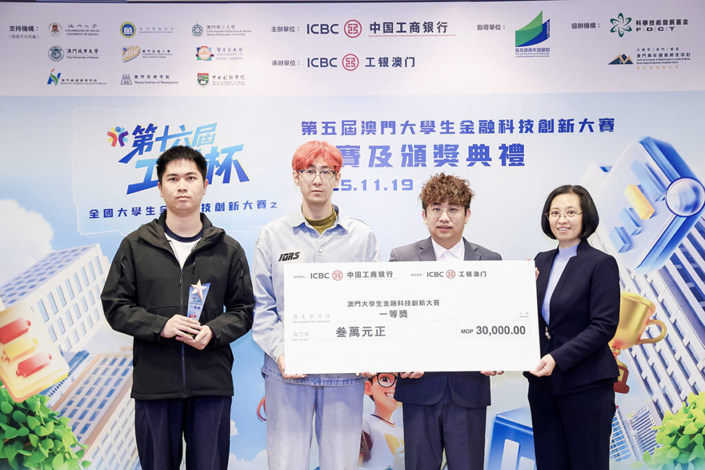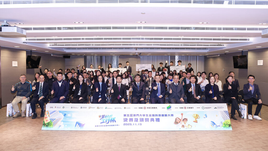 由中國工商銀行主辦、工銀澳門承辦的「2025『工行杯』全國大學生金融科技創新大賽之第五屆澳門大學生金融科技創新大賽」,於昨(19)日在置地廣場工銀(澳門)中心九樓會議廳舉行決賽及頒獎典禮。活動邀請了中央人民政府駐澳門特別行政區聯絡辦公室經濟部副部長楊全州、澳門特別行政區政府教育及青年發展局副局長丁少雄、中國工商銀行總行金融科技部副總經理黃玉、工銀澳門行政總裁牛建軍及多位機構代表出席,共同見證這場金融科技創新盛事。