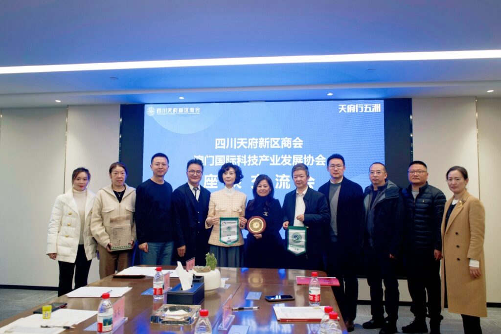 次日,交流團在四川天府新區黨工委黨群工作部常務副部長姜明茂,全國人大代表、四川天府新區商會會長王麒的全程陪同下,參觀天府新區規劃廳及四川製造業智改數轉平台,實地考察天府新區在產城融合規劃,以及人工智能、工業互聯網及數字化等前沿新技術在傳統製造業轉型中的標竿案例。在隨後召開的座談會上,雙方圍繞推動蓉澳兩地在產業協同、技術創新、人才培養及項目對接等方面的交流合作,展開了深入對話。