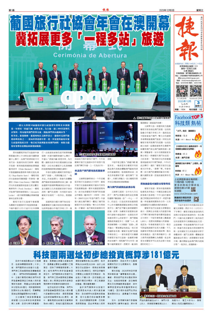 澳門捷報,澳門捷報網站-專注大灣區創新、創意和創業的"三創"資訊,並每日公佈本澳時事熱話榜單,按不同話題分類搜羅居民最關注的話題,貼近居民生活.