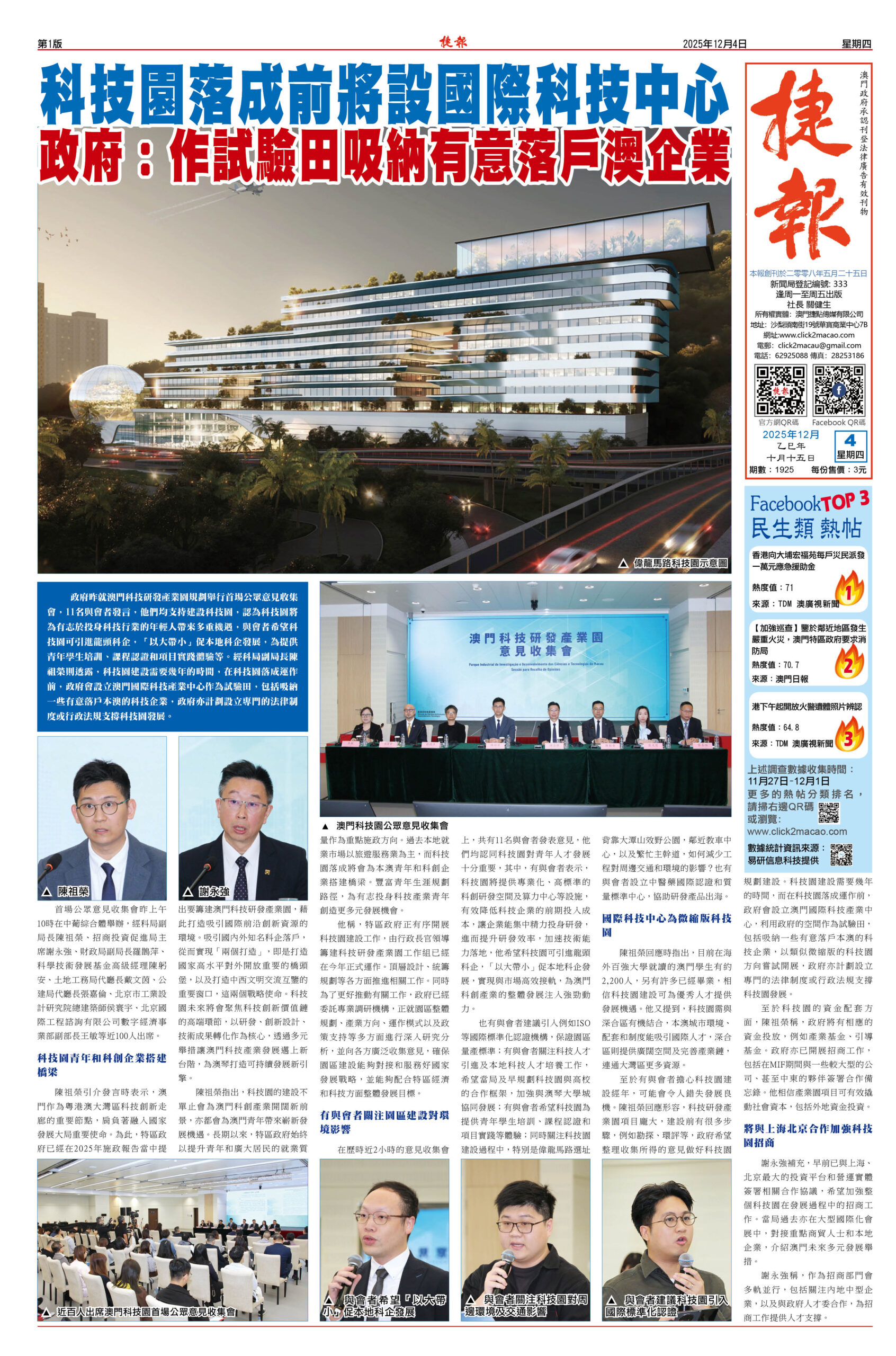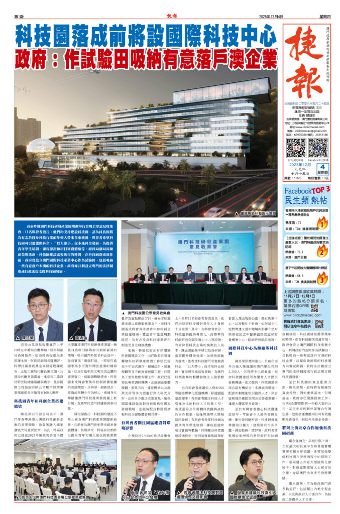 澳門捷報,澳門捷報網站-專注大灣區創新、創意和創業的"三創"資訊,並每日公佈本澳時事熱話榜單,按不同話題分類搜羅居民最關注的話題,貼近居民生活.