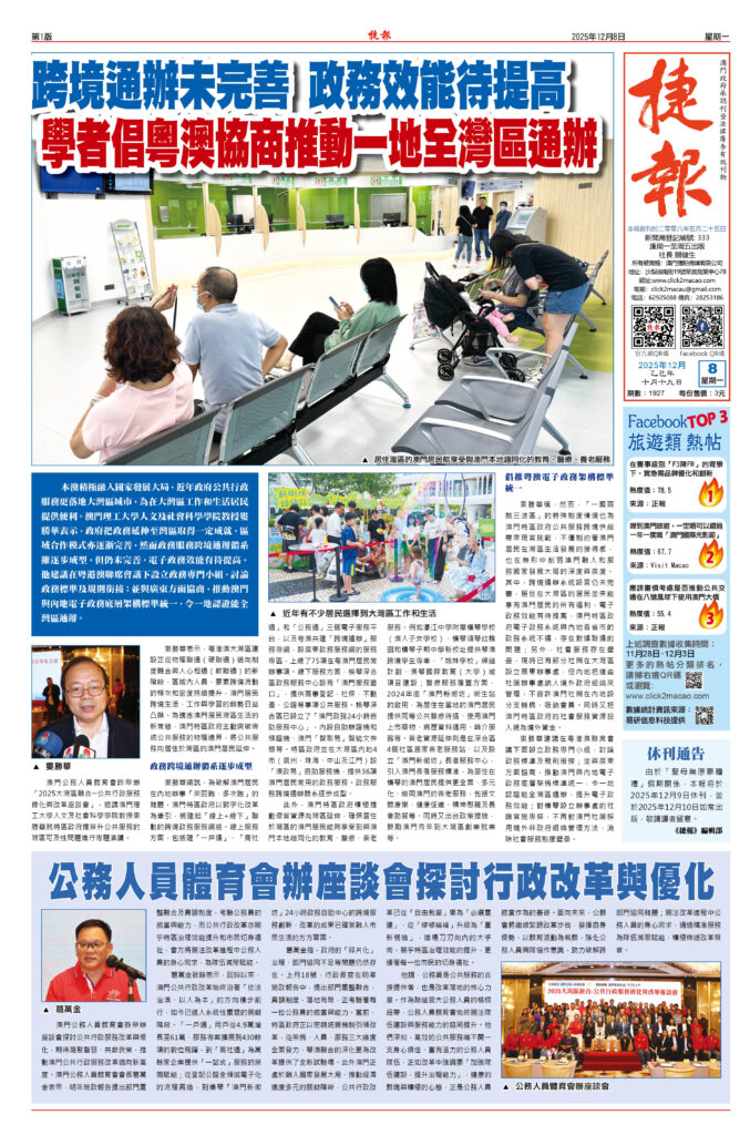 跨境通辦未完善 政務效能待提高 學者倡粵澳協商推動一地全灣區通辦
