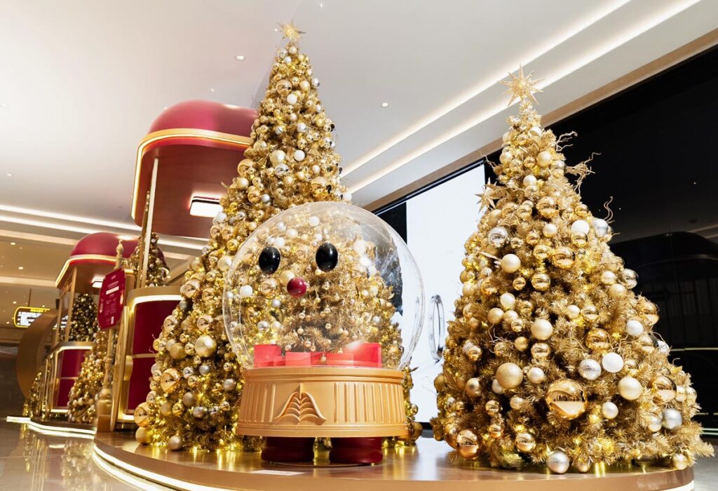 翡翠大堂的中心裝飾將聖誕樹與水晶球巧妙結合,呈現迷人的節慶標誌,並定時上演光影盛宴。銀河時尚匯則以璀璨拱門、金光瀑布和聖誕主題匯演迎接賓客。中央大堂設有巨型聖誕球形穹頂,結合AR技術,營造夢幻雪景。消費滿指定金額或持有特定門票的賓客可體驗此獨家活動。