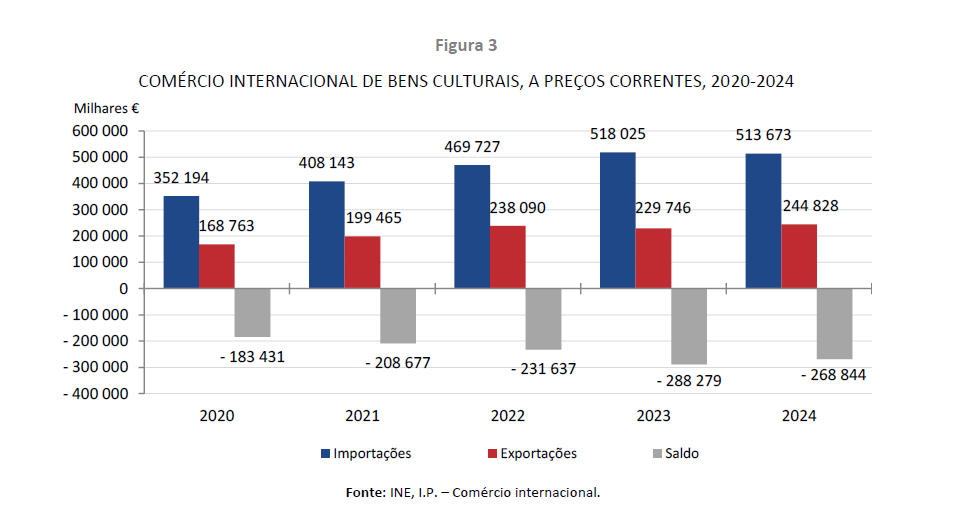2023年,葡萄牙文化創意產業的企業數量達到79,706家,較2022年增加了5.8%。這些企業創造了88億歐元的營業額,較去年同期增長8.2%。然而,文化產品的進口額超過了出口額,導致貿易逆差達到2.688億歐元。