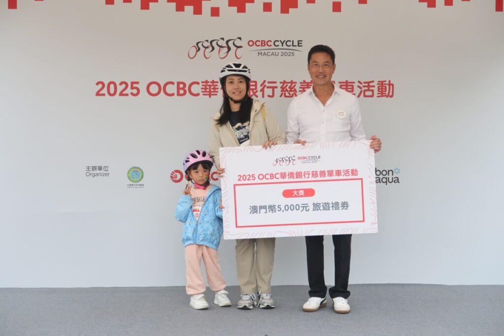 OCBC華僑銀行澳門連續五年將單車活動所收取之所有報名費全數捐贈予「澳門明愛」,支持其在本澳多項社會服務及關愛社區的工作,進一步展現OCBC華僑銀行澳門長期深耕本地、回饋社會的承諾。今年單車活動以綠色生活和可持續發展的理念為主軸,參加者以創意Cosplay造型踩單車暢遊氹仔海濱,沿途欣賞城市景致,在輕鬆愉快的氛圍中融合運動、環保精神與親子時光。現場同時設有攤位遊戲、面部彩繪及360拍攝平台,並舉行豐富的大抽獎活動,獎品包括旅遊禮券等多項禮品。共10位幸運兒贏得獎項,其中大獎為價值澳門幣5,000元的旅遊禮券,讓家長及小朋友共享周末樂趣,為活動增添歡笑與溫馨。