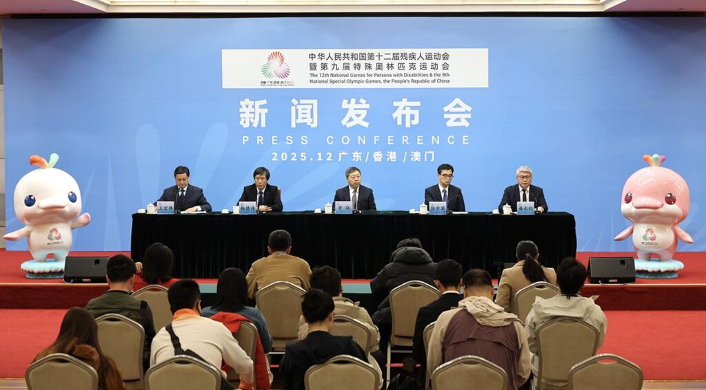 全國第十二屆殘疾人運動會暨第九屆特殊奧林匹克運動會昨日在深圳舉行新聞發布會,介紹殘特奧會總體運行情况和賽事組織成果。殘特奧會組委會副主任、中國殘聯黨組成員常征、殘特奧會廣東賽區執委會副主任、廣東省殘聯理事長陳學軍、殘特奧會香港賽區統籌辦公室主任楊德強及澳門賽區籌備辦公室主任潘永權出席。