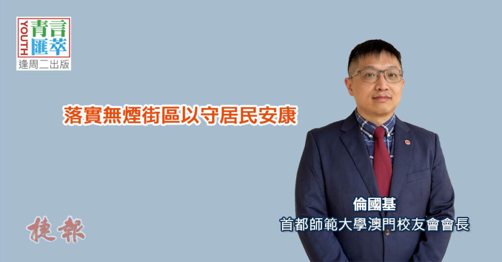日前,當局宣布在氹仔中葡學校、澳門工聯職業技術中學、海星中學(附屬小學)及澳門教區梁文燕托兒所親子館在其門口設置禁煙地點。此舉不僅是為了淨化校園周邊環境,更是為明年在新口岸行人路試行街道禁煙、打造「健康社區」邁出的堅實一步。然而,面對日益嚴峻的公共衛生挑戰與城市安全隱憂,本澳的控煙步伐仍有進一步提速與擴大範圍的必要。