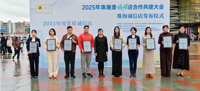 隨著「澳車北上」「港車北上」政策深入實施,珠港澳三地居民消費互動日益密切。大會現場依據《誠信店評估指標體系》灣區標準,發佈首批評選結果,為50家「優質誠信店」和150家「珠海誠信店」集中授牌。商戶覆蓋零售、餐飲、醫療、服務等多個領域,既有堅守誠信經營十餘載、零投訴零糾紛的「常青樹」,也有主動承擔消費維權責任、熱心公益的「踐行者」。