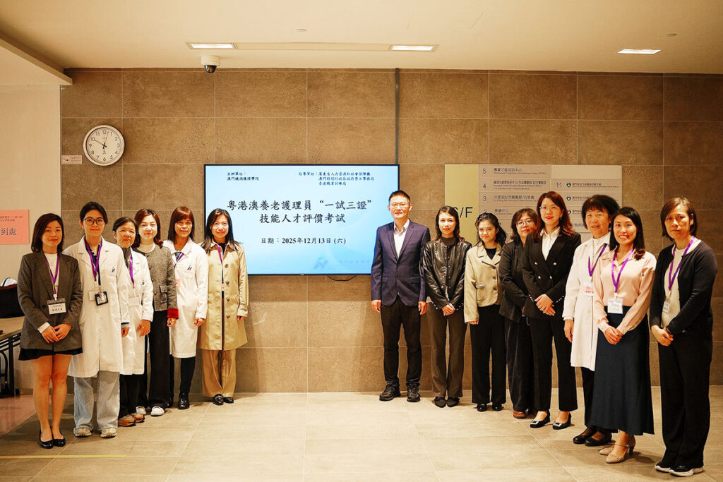 在粵港澳大灣區深化合作的政策框架下,澳門首場養老護理員「一試三證」技能評價考試於12月13日假澳門鏡湖護理學院客觀結構性臨床考試中心順利舉行,吸引20名自來本地照護機構的從業人員及相關專業課程學生報考。通過考核的考生,將獲由廣東省人力資源和社會保障廳、澳門勞工事務局及香港職業訓練局三方分別頒發,當地認可的職業技能證書,實現「一次考試,三地認證」。