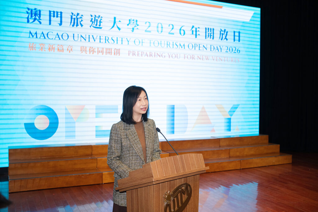 開幕式於下午2時在展望樓舉行,一眾主禮嘉賓共同為開放日揭開序幕。校長黃竹君在開幕致辭時表示,特區政府正大力推進包括「澳門國際綜合旅遊文化區」與 「澳琴國際教育(大學)城」在內的重點工程。澳旅大將充分把握政策機遇,透過合作區延伸辦學、課程創新與國際協作,全力培養具有國際視野與社會擔當的 「旅遊+」專業人才。下學年計劃推出工商管理碩士及管理與數據科學學士學位課程,旨在培養兼具商業智慧與數據决策能力的複合型專才,以應對智慧旅遊時代的新挑戰。