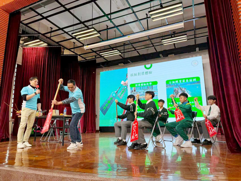 活動中展示了實際使用的龍舟槳與裝備,讓學生能夠近距離接觸這項兼具傳統文化與現代體育特色的運動。譚思朗講述他們在代表澳門出戰國際龍舟賽時所經歷的訓練與挑戰,鼓勵學生堅持夢想、勇於嘗試。