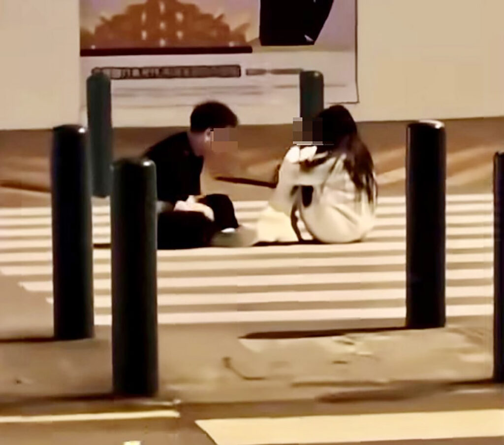 男女危坐於斑馬線上(網上短片截圖圖)