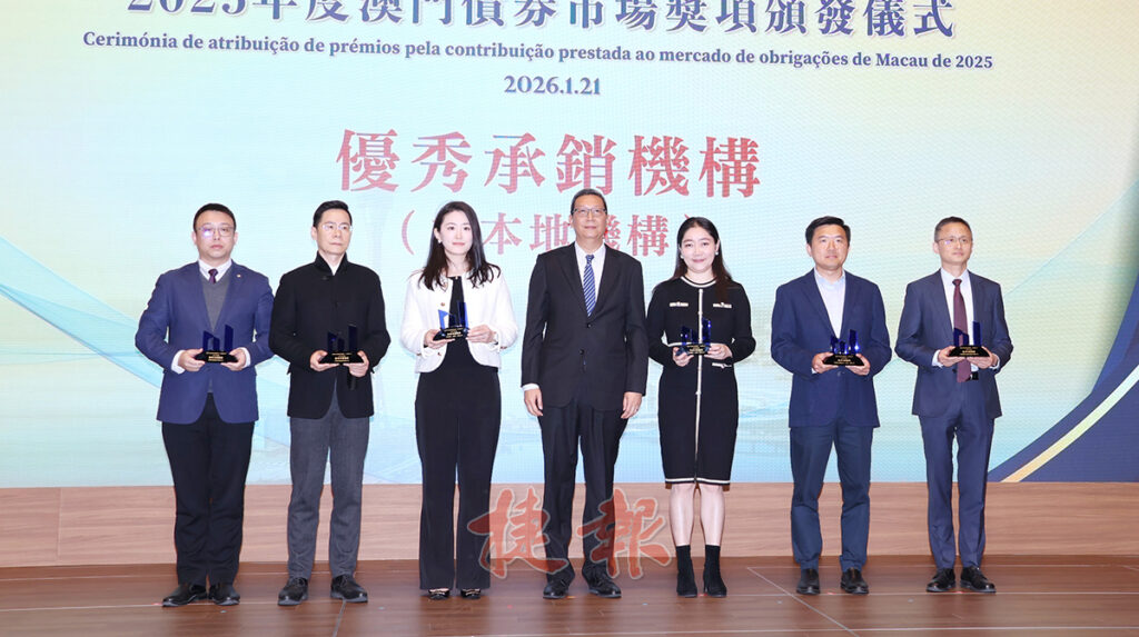 澳門中央證券託管結算一人有限公司(MCSD)昨慶祝四周年誌慶,同時舉行「2025年度澳門債券市場獎項頒發儀式」,嘉許於2025年為澳門債券市場作出貢獻的市場參與者,共有29家本地及外地機構獲獎。金管局行政管理委員會代主席黃善文指,現時在MCSD託管的各類債務證券規模,約1,100億等值澳門元,政府正同步完善與債券市場發展相配套的法律制度,助推澳門債券市場最終實現與內地及國際市場互聯互通。