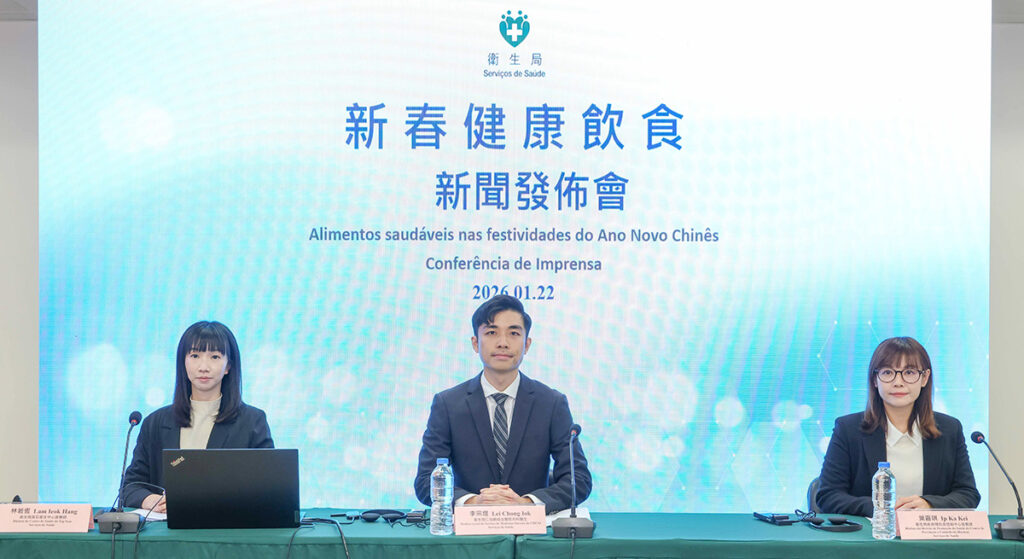 新春佳節將至,華人有闔家聚餐的傳統,若不注意容易進食過量高油、高鹽、高糖的食物或過量飲食,對身體健康構成風險。特區政府積極響應國家倡議「體重管理年」,落實《健康澳門藍圖》所訂定的總體目標和指標,貫徹「關口前移、資源下沉、觀念轉變」三大政策方向,衛生局於昨日舉行「新春健康飲食新聞發布會」,引導居民建立節日健康飲食觀,共建健康社區。衛生局仁伯爵綜合醫院內科李宗煜醫生、塔石衛生中心林若恆營養師、疾病預防及控制中心葉嘉琪營養師出席了發布會。