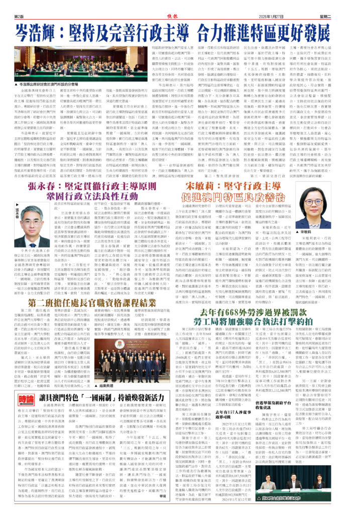 宋敏莉:堅守行政主導 促進澳門特區良政善治