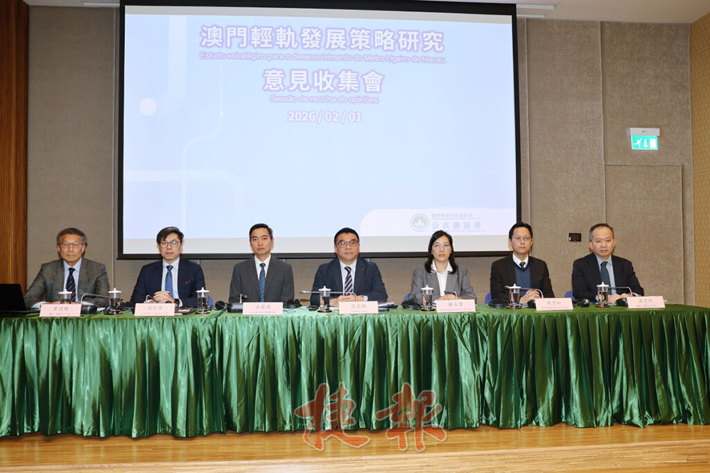 「澳門輕軌發展策略研究」意見收集期由2026年1月23日至2月28日止,公共建設局早前已分別於1月 26日及27日舉辦了兩場專場會議,出席人員包括交通諮 詢委員會委員、城市規劃委員會委員、環境諮詢委員會委 員、社區服務諮詢委員會委員和建築業發展關注小組成員。