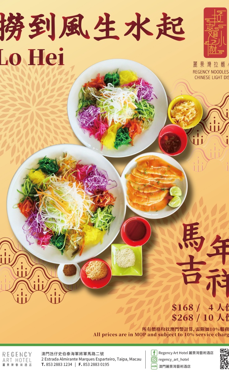 為迎接丙午馬年的到來,麗景灣藝術酒店將於新春期間呈獻吉祥寓意,以粵港澳及東南亞地區新春傳統的「撈起」儀式為靈感的賀年菜式——「撈到風生水起」,並由酒店廚藝團隊以藝術美感重新演繹,為賓客及家庭帶來一個互動有趣、寓意豐饒的新春用餐體驗,共祈求馬年一馬當先、萬事順遂。