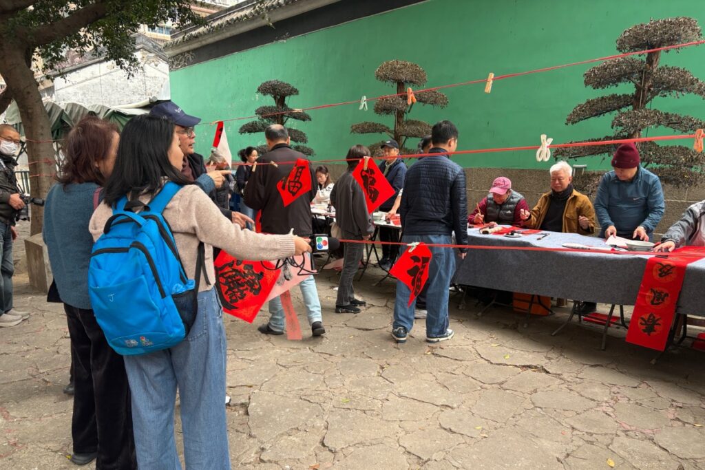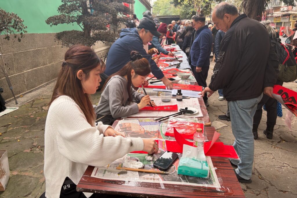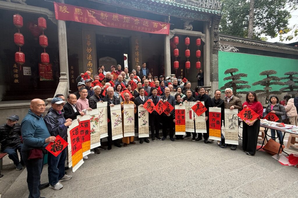 由澳門書法院、南國紅豆藝苑及普濟禪院聯合主辦的「駿馬迎新歲,揮春送百福」活動,今(8)日下午時半在觀音堂大門口前地舉行,邀請40多名本澳書畫界人士參加,為街坊書寫揮春及對聯,喜迎馬年。