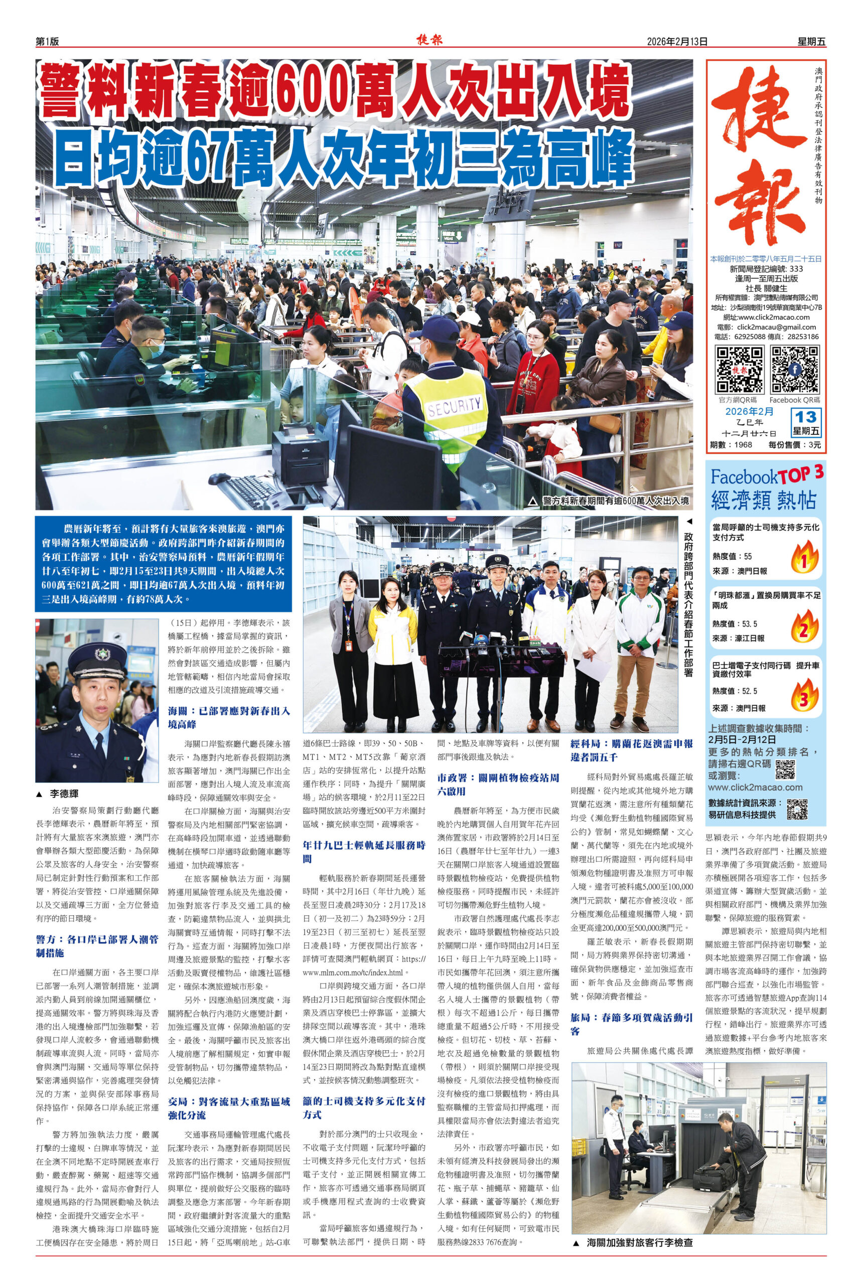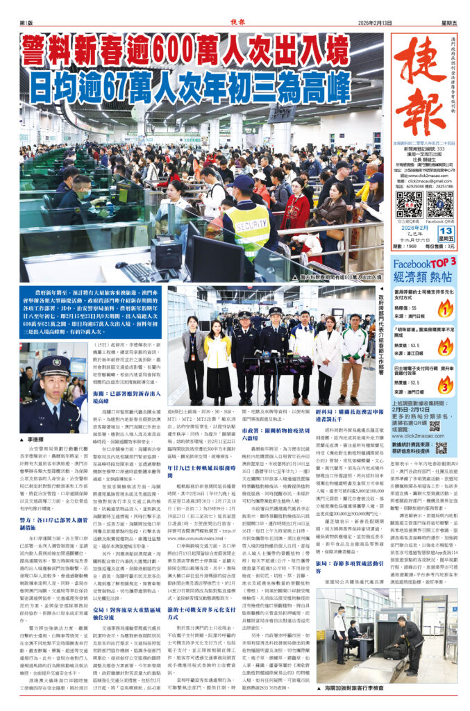 警料新春逾600萬人次出入境 日均逾67萬人次年初三為高峰