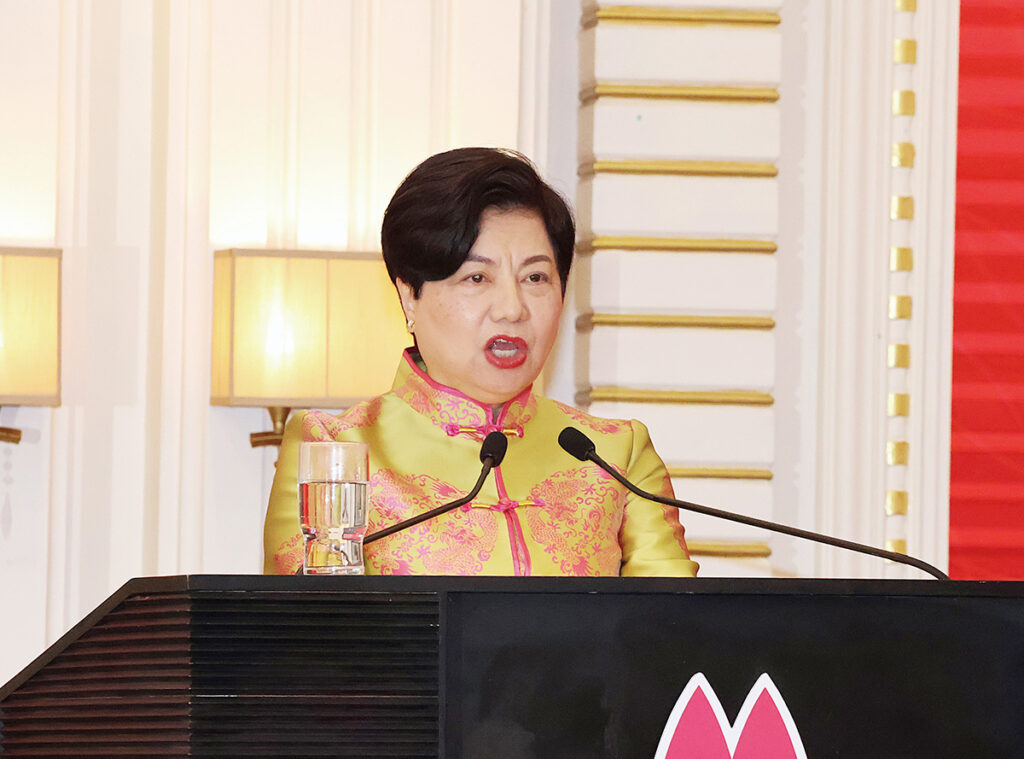 澳門婦聯總會昨下午舉行慶祝「三八」國際婦女節酒會,該會會長劉金玲表示,將從三方面着力推動澳門婦女事業再上新台階,為「十五五」規劃落地實施匯聚磅礴巾幗力量,包括將強化思想引領,高舉愛國愛澳旗幟,支持特區政府依法施政,築牢愛國愛澳社會基礎;發揮婦女作用,推動各界婦女增強自身競爭力,高質量參與橫琴粵澳深度合作區建設;以及優化婦幼服務,完善權益保障,推動構建生育友好型社會與兒童友好型城市,提升居民獲得感與安全感。