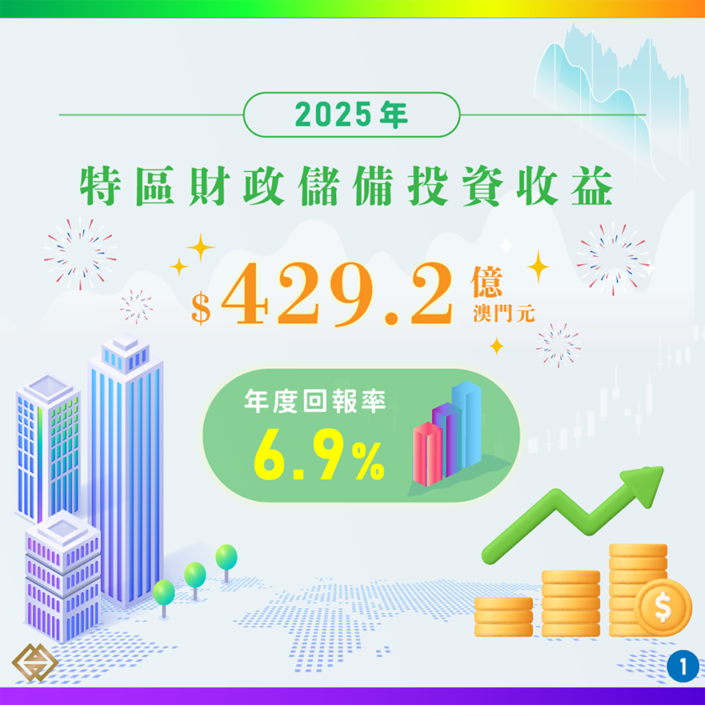 為妥善管理財政盈餘,並為公共財政支付能力提供保障,特區政府透過制定第8/2011號法律《財政儲備法律制度》,由澳門金融管理局負責財政儲備的投資及管理。2025年,澳門特區財政儲備錄得429.2億(澳門元,下同)的投資收益,年度回報率為6.9%,創歷史新高。截至去年底,財政儲備的資本金額為6,667.4億;其中,基本儲備及超額儲備分別為1,672.9億及4,994.5億。