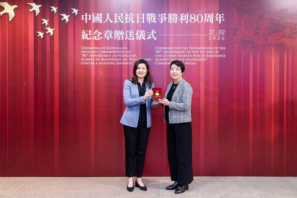 為弘揚偉大抗戰精神,深化愛國主義教育,中央人民政府向澳門特別行政區政府贈送「中國人民抗日戰爭勝利80周年紀念章」,贈送儀式2月27日於澳門博物館舉行,紀念章隨即在澳門博物館一樓大堂展出。