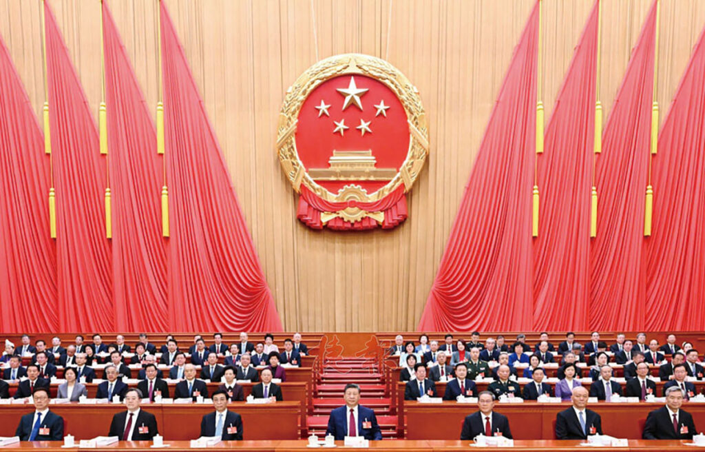 十四屆全國人大四次會議昨日上午9時在北京人民大會堂開幕,習近平等黨和國家領導人出席開幕會,全國政協副主席何厚鏵,澳門中聯辦主任鄭新聰,香港特區行政長官李家超,澳門特區行政長官岑浩輝,澳區全國人大代表團團長劉藝良,全國人大常委高開賢等在主席台就座。