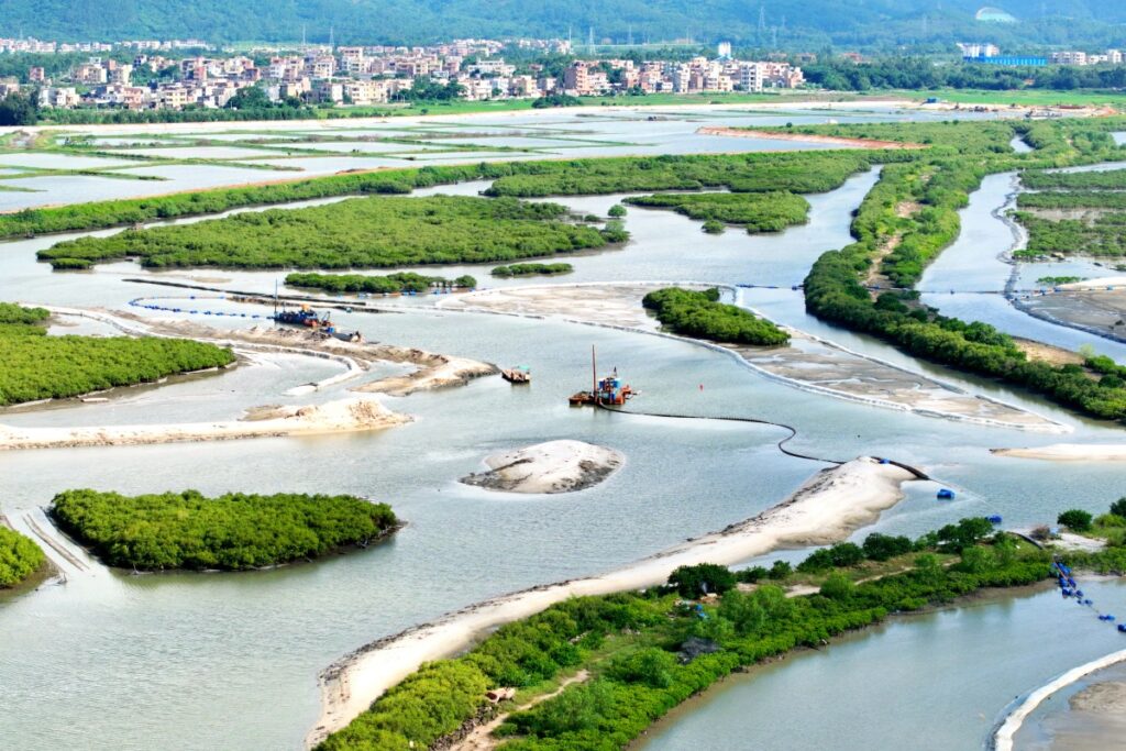 在項目團隊的努力下,昔日荒蕪的灘塗上,25座生態島嶼錯落有致,298.26公頃紅樹林生機勃發,42,796米護灘工程守護海岸安寧,780米生態海堤蜿蜒串聯起綠色屏障,白鷺、蒼鷺等水鳥在此棲息覓食,魚、蝦、蟹等海洋生物自在游弋,生機盎然,一幅林海相依、萬物共生的生態畫卷在陽西大地徐徐展開。
