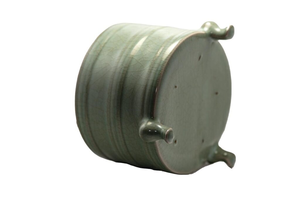 三足樽式爐釉面開片呈現出獨特的冰裂紋效果