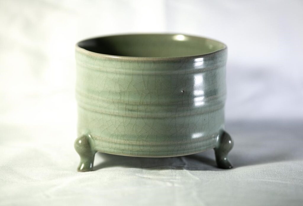 宋瓷之美——汝窯淡天青釉弦紋三足樽式爐