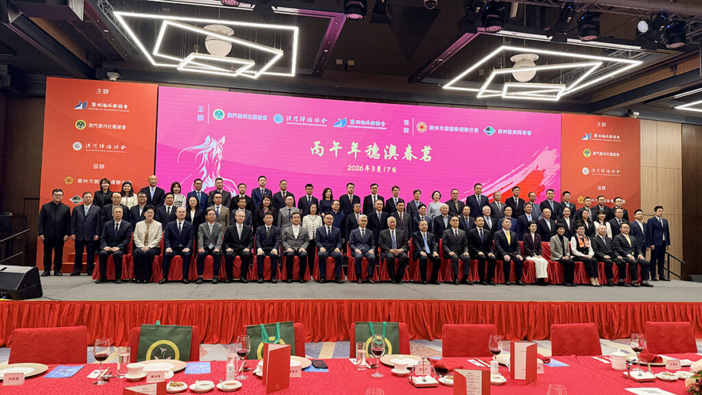 由廣州海外聯誼會、澳門廣州社團總會、澳門歸僑總會聯合舉辦的丙午年穗澳春茗活動昨(17)日在澳門舉行。全國政協副主席何厚鏵、澳門特區經濟財政司司長戴建業、廣州市委常委、統戰部部長王煥清、中央政府駐澳門聯絡辦協調部副部長劉冠宇等嘉賓出席活動,逾400位澳門各界代表共聚一堂,暢敘情誼、共謀發展。
