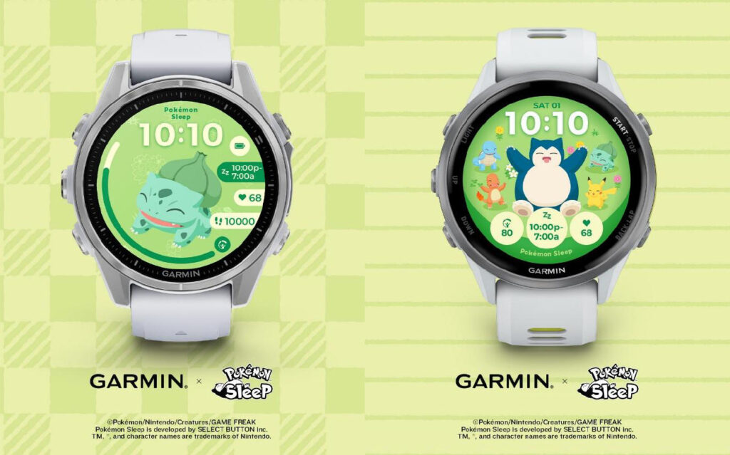 Garmin在Connect IQ商店上架兩款合作動態錶面,分別為「Pokémon Sleep: 就決定是你了」與「Pokémon Sleep: 卡比獸與夥伴們」,均開放免費下載。前者支持從48隻寶可夢中選取一款顯示於錶面,後者則匯集卡比獸、皮卡丘等經典寶可夢形象。