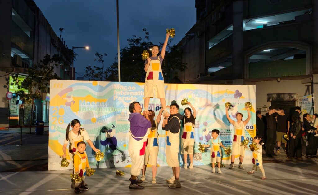 澳門藍眼睛國際藝術交流協會帶來融合多元風格的精彩演出,將高蹺技藝、詠春武術、流行舞與東方舞巧妙結合,打造別具特色的街頭藝術盛宴。澳門勇晉體育俱樂部則帶來活力滿滿的啦啦隊表演與驚豔的空中特技,現場更設有親民互動環節、表演者邀請觀眾同台體驗啦啦隊動作,現場歡笑連連、氣氛熱烈。