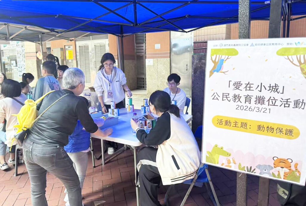 澳門青年義務特工協會聯同街坊總會公民教育中心、由市政署贊助,於早前在林茂海邊街舉辦「愛在小城」公民教育攤位活動,組織本澳青年及親子義工進入社區,化身成推廣大使向居民宣揚動物保護意識。