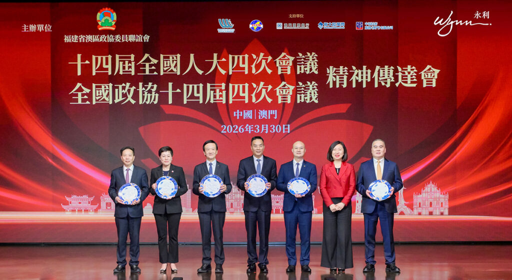 為深入學習貫徹2026年全國兩會精神,把握國家「十五五」規劃機遇、助力澳門更好融入國家發展大局。3月30日下午,福建省澳區政協委員聯誼會主辦,聯同永利澳門、澳門中華文化發展促進會、海峽兩岸青年文化交流中心、澳門台商聯誼會、澳門國際銀行、澳門新大陸萬博科技有限公司、中福技術服務(澳門)有限公司,大力支持的「十四屆全國人大四次會議、全國政協十四屆四次會議精神傳達會」,於永利皇宮宴會廳隆重舉行,現場約五百名各界人士參與,活動氛圍熱烈莊重。