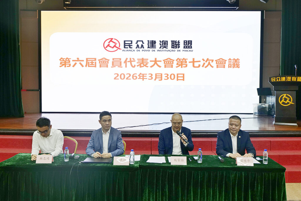 民眾建澳聯盟於30日晚上七時,在黑沙環總部禮堂舉行第六屆會員代表大會第七次會議,總結二O二五年度工作,並選出第七屆組織架構。會議由會員大會主席施家倫主持,理事長李良汪作理事會報告,監事長葉桂平作監事會報告,副主席林志鴻則發表財務報告。