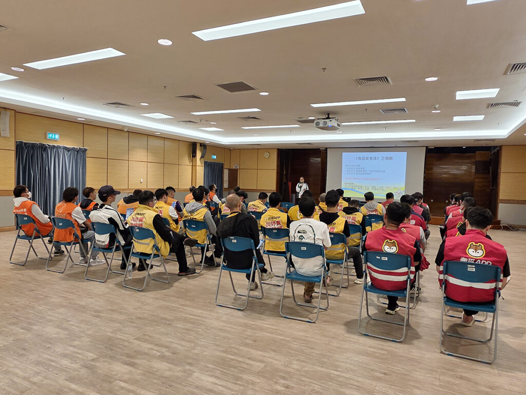 市政署持續加強對食品配送行業的食安宣教工作,早前與本澳三間網絡食品交易第三方平台合作,舉辦外賣配送服務食安講座,重點講解《食品安全法》的規範、網絡食品配送平台的義務及責任,以及配送過程中須注意的食安要點,強化從業員的責任意識及食安操作能力,防範食源性疾病的發生。近50名外賣車手及公司管理人員參與。